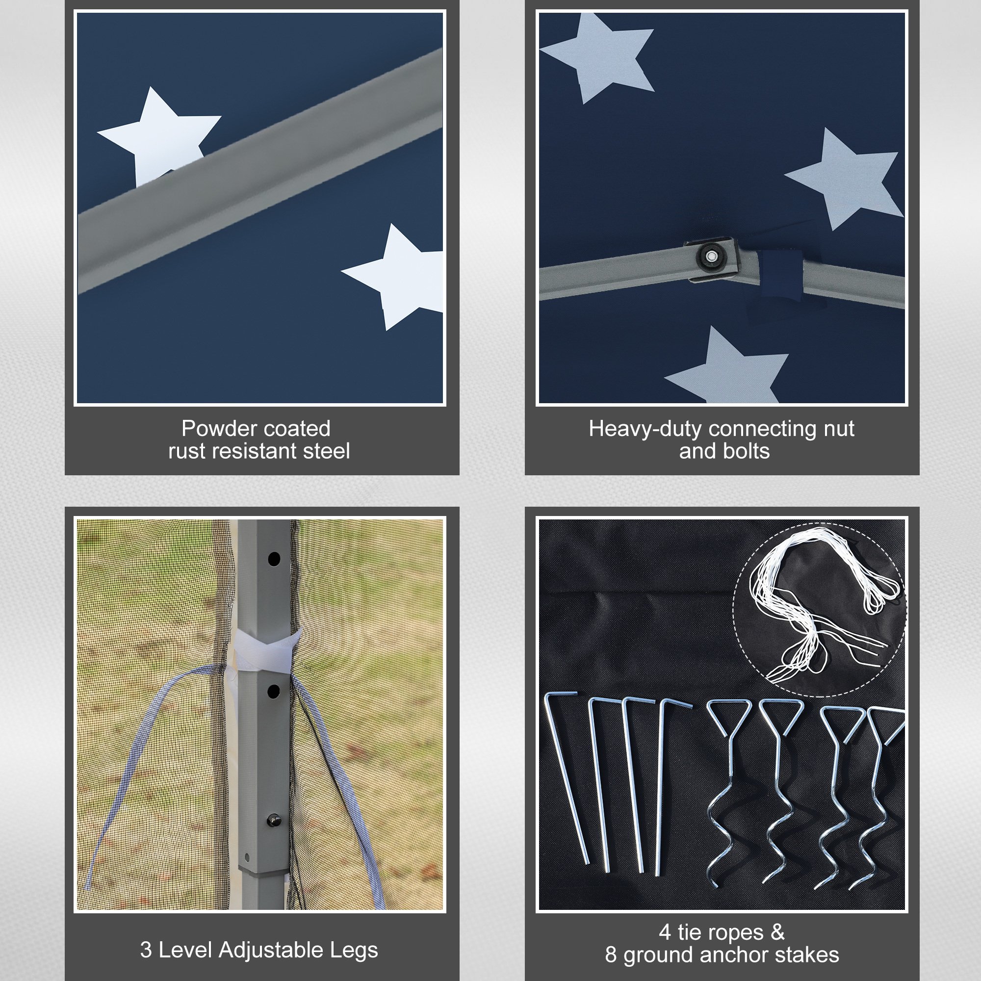 Easy Pop-Up Canopy Tent: Don't spend time struggling. With our pop-up canopy, set up and tear down is easy. Take it out of the bag, unfold the frame, stake it down, attach the top, and adjust the legs. In a short span of time, you can fit a crowd without making them feel crowded.